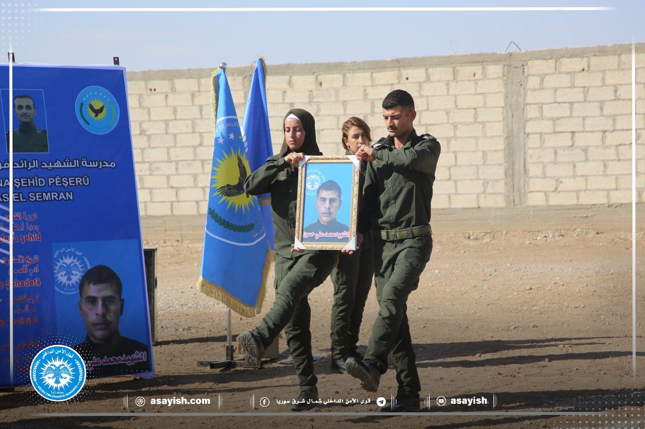 Merasîm bi beşdarbûna Fermandariya Giştî ya Hêzên Ewlekariya Hundirîn a Jinê, Rêveberiya Giştî ya fakulte û Dibistanan, Beşa Tenduristiyê ya Bakur û Rojhilatê Sûriyeyê û malbata şehîd dest pê kir.